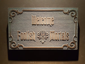Disney Haunted Mansion Welcome Foolish Mortals inspired sign DARK aged finish