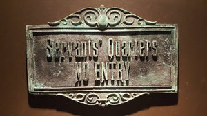 Disney Prop Haunted Mansion Attraction Servants Quarters no entry Plaque Sign ANTIQUE FINISH